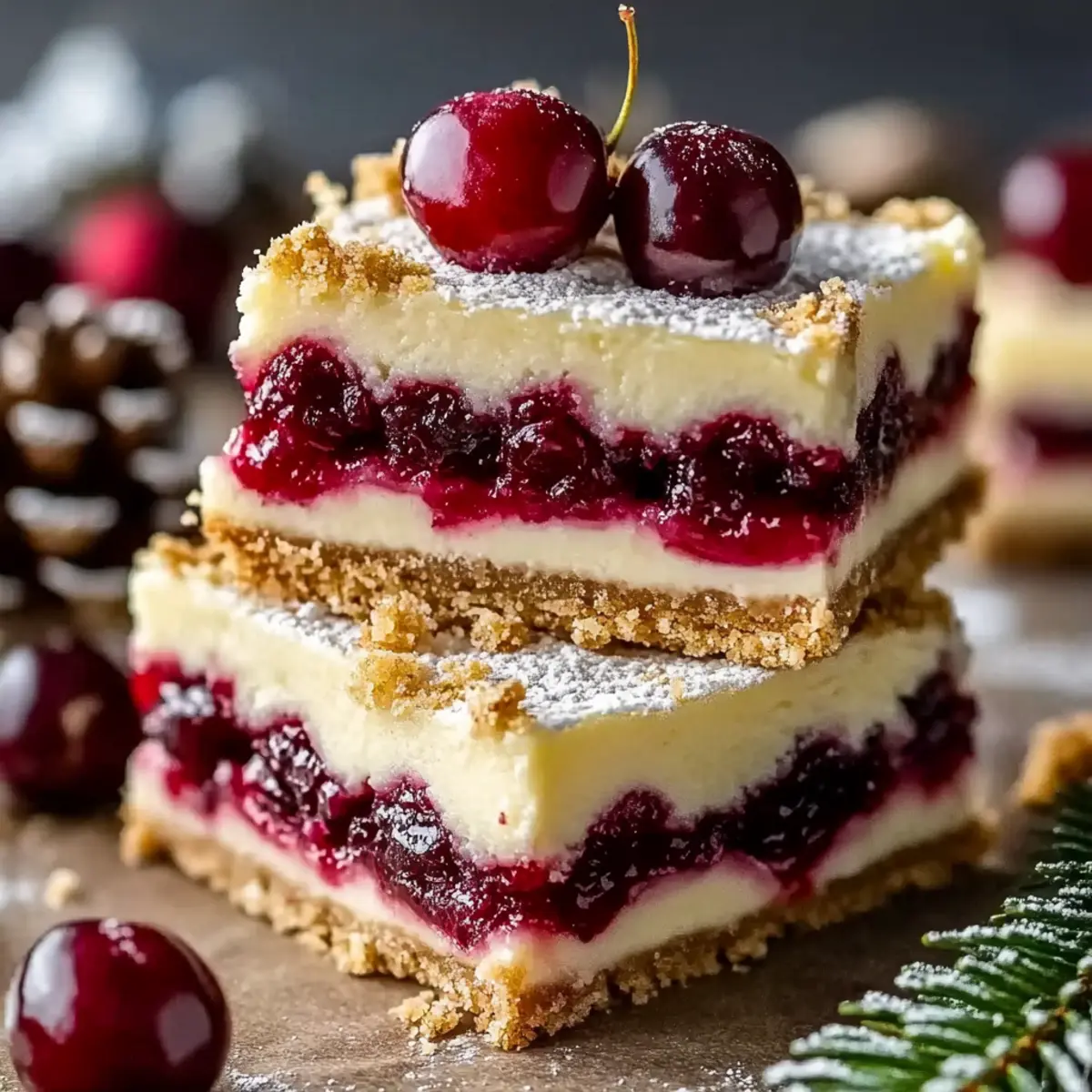 Barres de Cheesecake aux Cerises de Noël – Un Dessert Festif