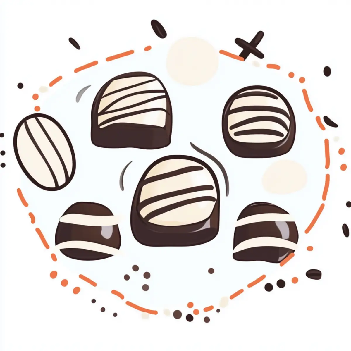 Décoérez : Faites des spirales avec du chocolat fondu contrastant et ajoutez des noix concassées ou un petit chocolat en forme de grain de café sur le dessus avant que le revêtement ne durcisse.