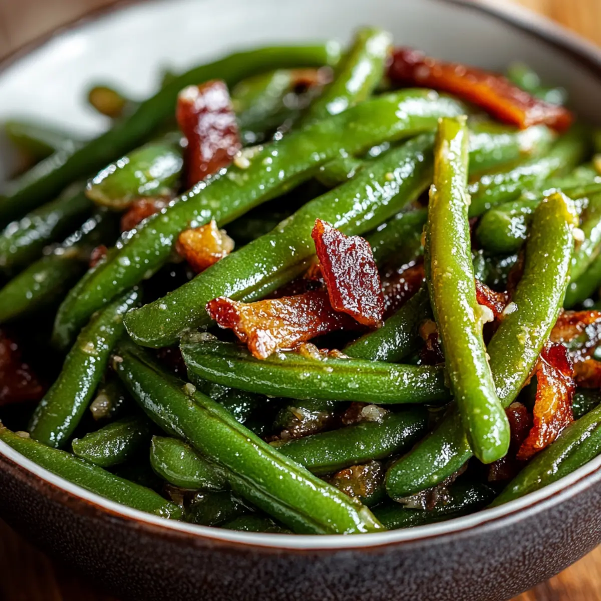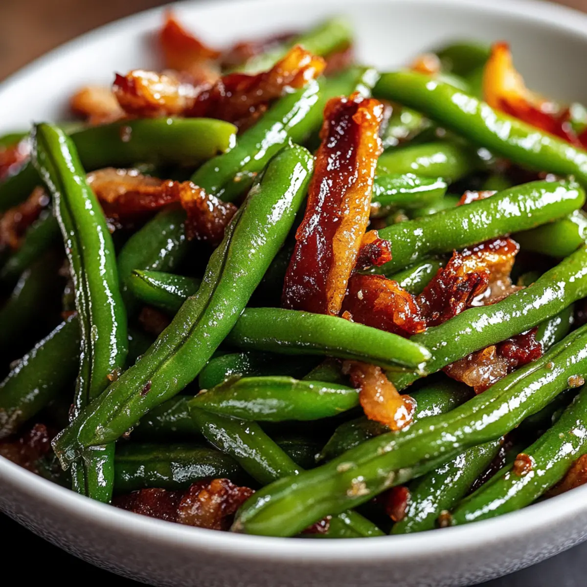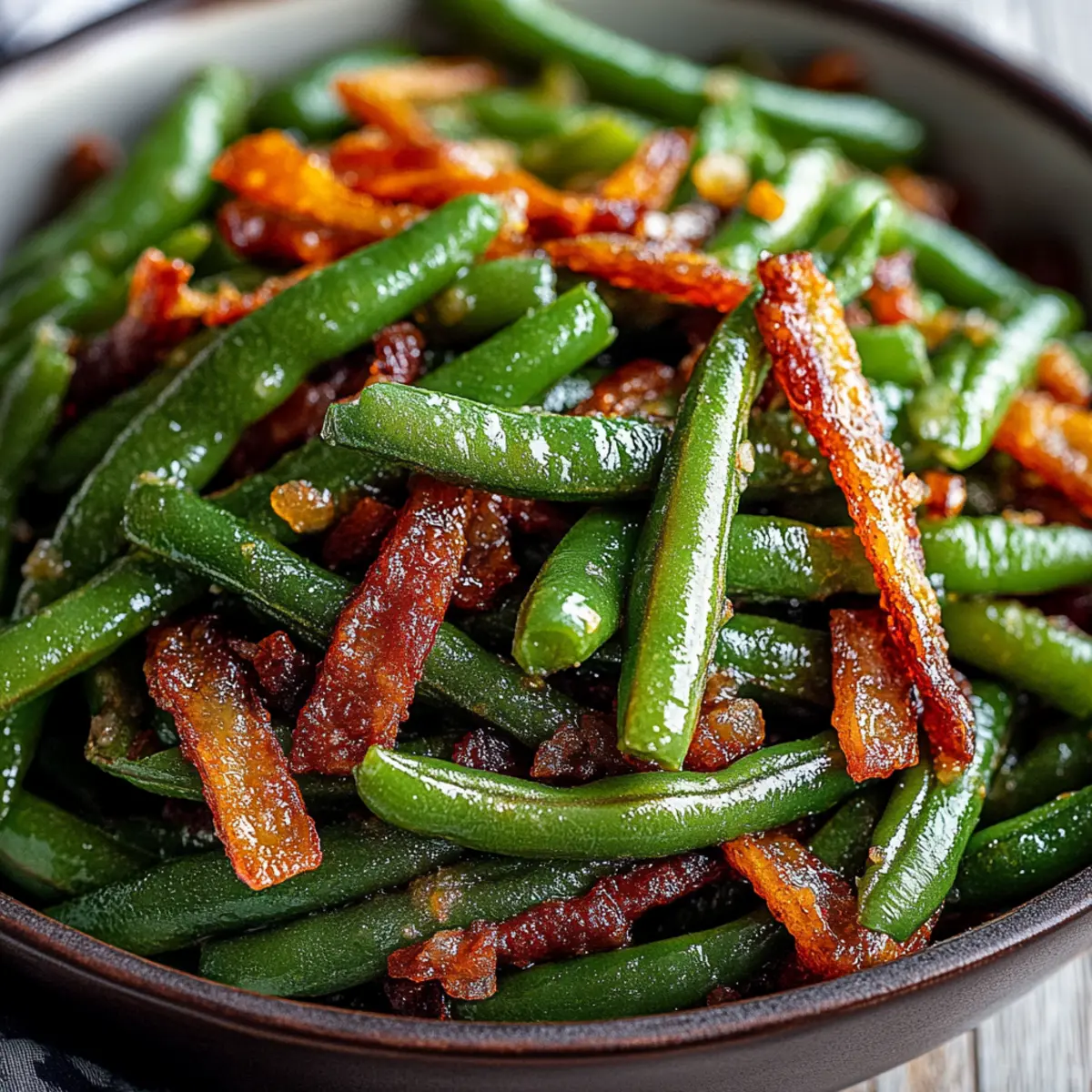 Lors d’une soirée tranquille à la maison, je me suis retrouvé dans ma cuisine, en quête d’un accompagnement qui pourrait élever n’importe quel plat principal. Alors que je secouais quelques légumes dans le tiroir, les haricots verts ont tout de suite attiré mon attention. En quelques minutes, je savais que je voulais en faire quelque chose de spécial. Pourquoi ne pas les enrober d’un glaçage sucré-salé, agrémenté de bacon croustillant ?