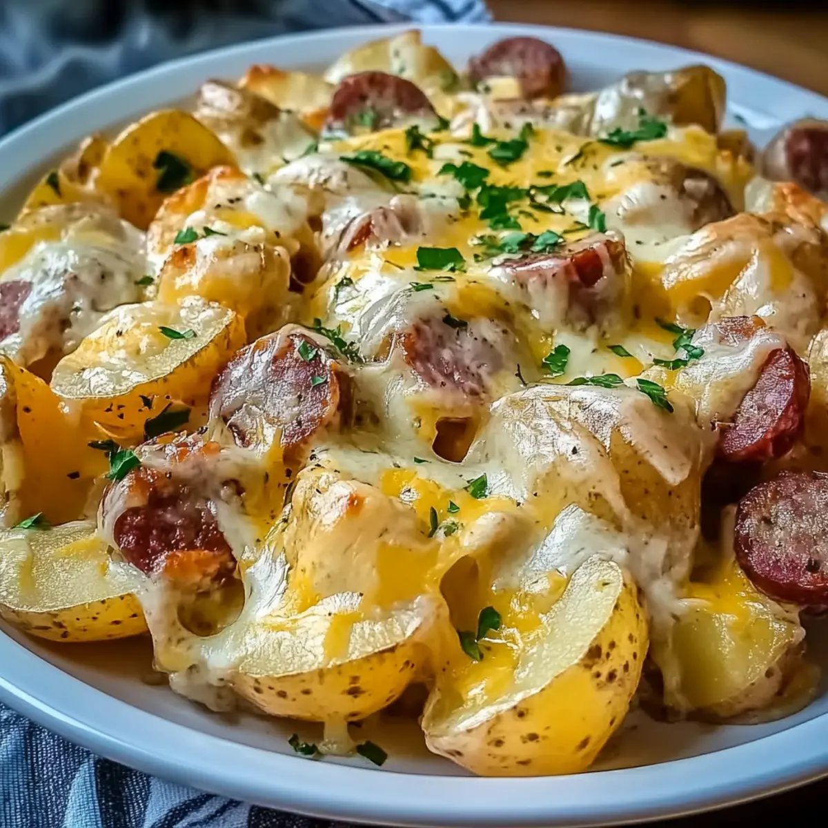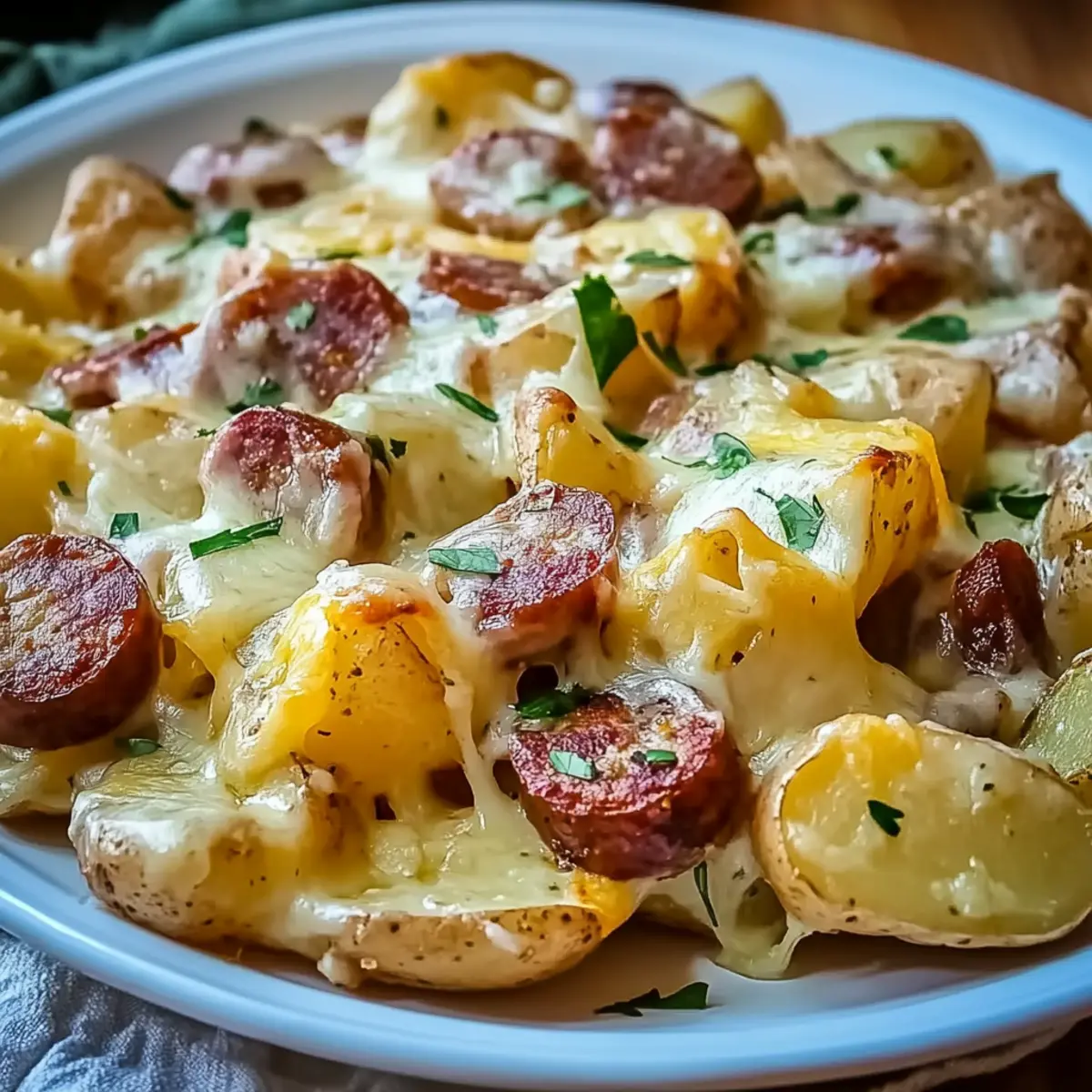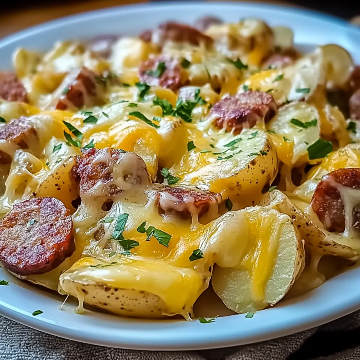 Recette de Poêlée de Pommes de Terre Crémeuses au Fromage et Saucisse Fumée Indulgente