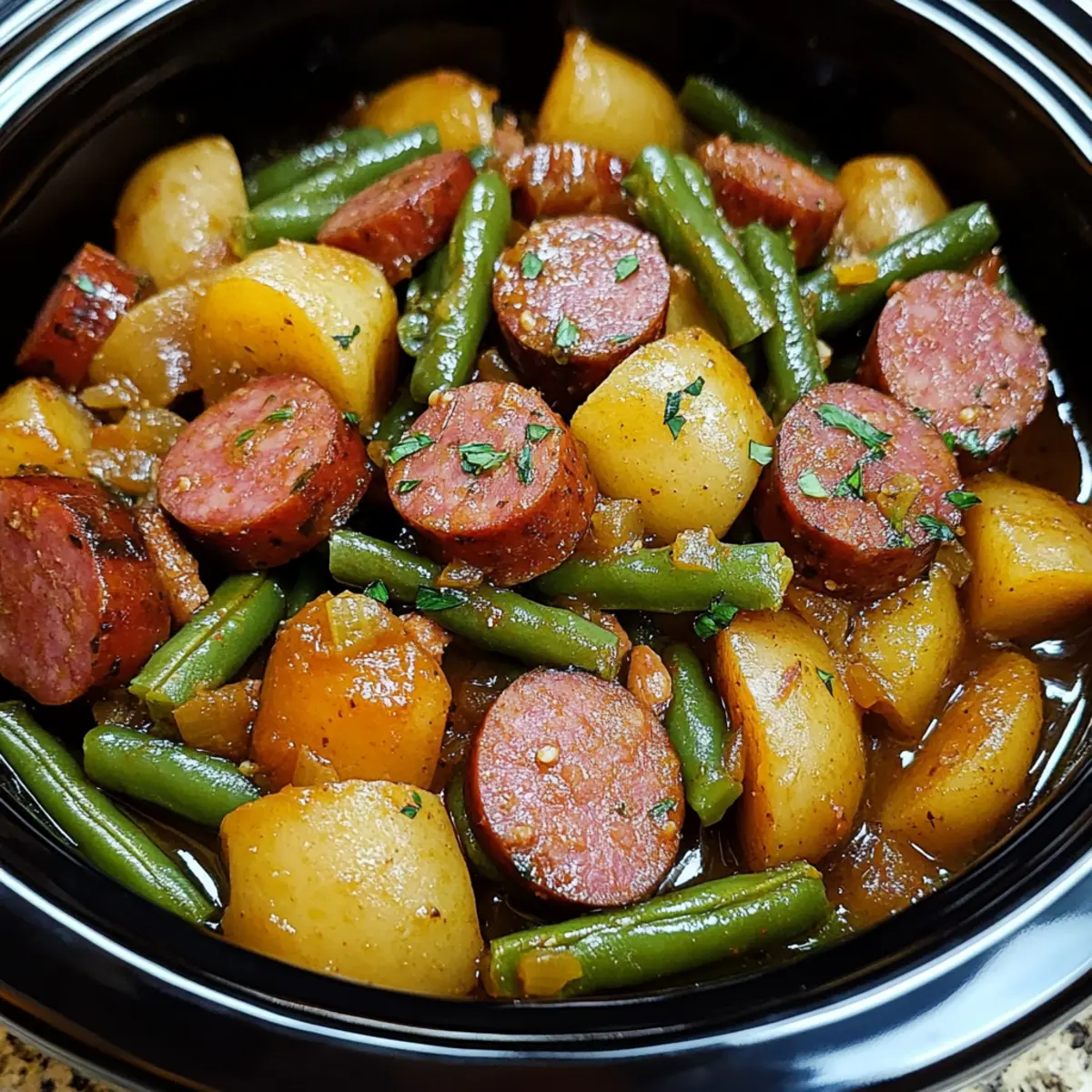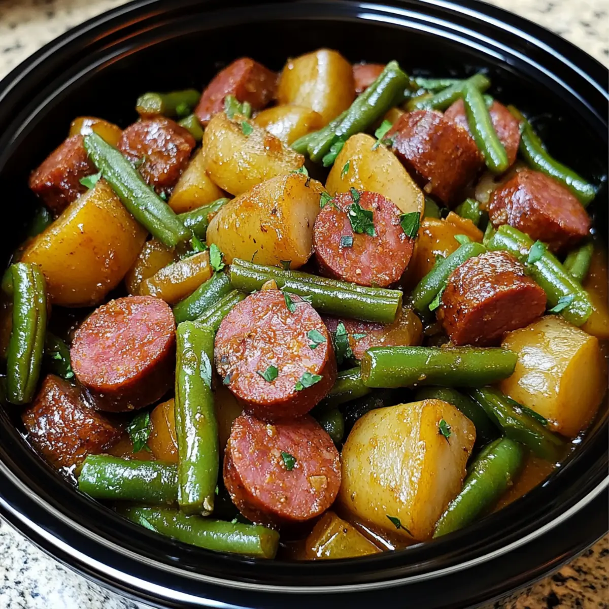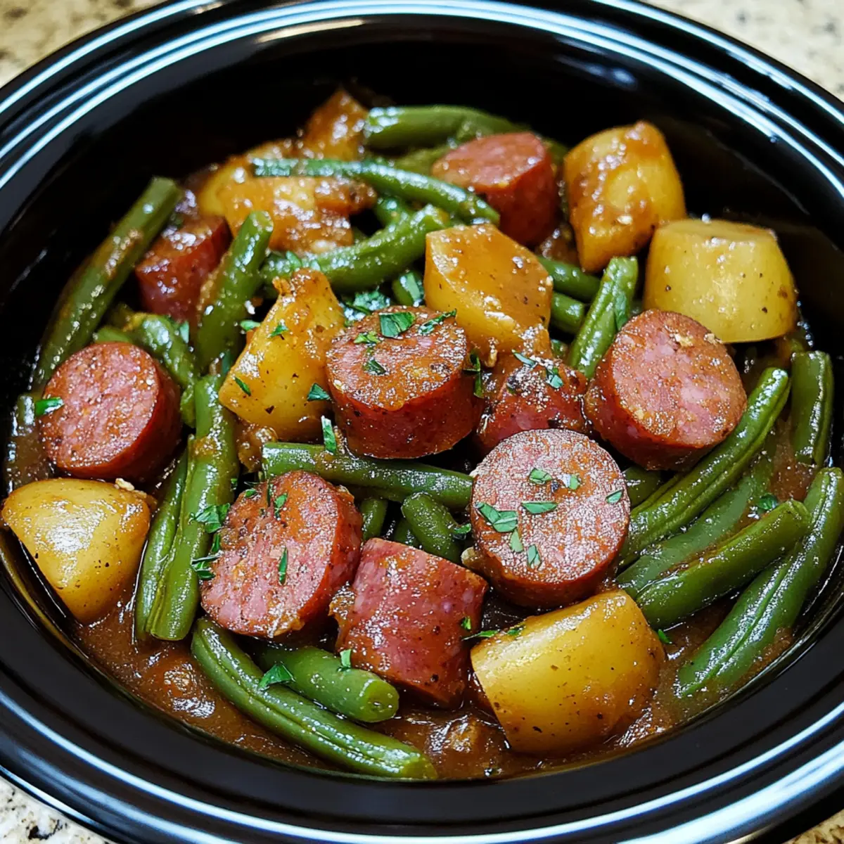 Saveur réconfortante : Le mélange de kielbasa fumée et de haricots verts tendres crée un goût irrésistible.