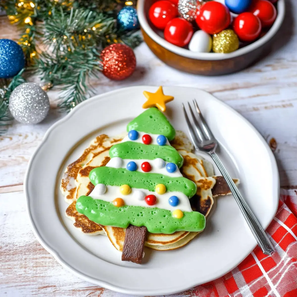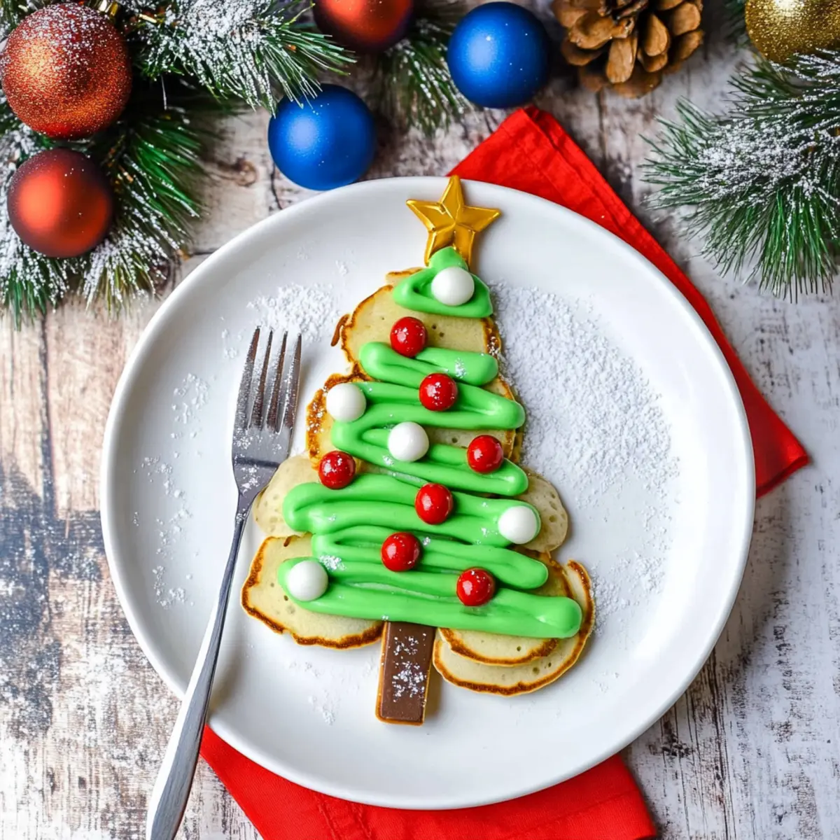 Visuellement attrayants : Faites sourire vos invités avec des pancakes en forme de sapin, colorés et joyeux.