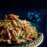 - Placez le poulet déchiqueté dans un bol ou dans le mijoteur pour le garder au chaud, puis versez ¾ tasse de sauce par-dessus. (Réservez le reste de la sauce pour servir avec du riz ou des légumes sautés.) Mélangez pour enrober. Servez et garnissez d’oignons verts.