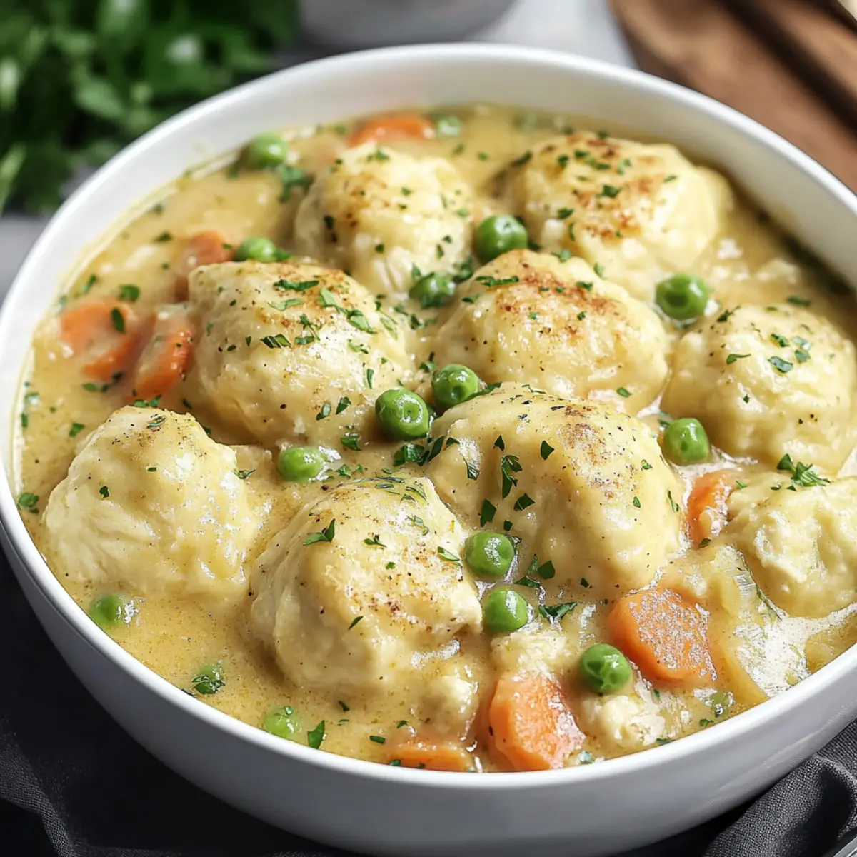 Ajouter les dumplings : Déposez des cuillerées de la pâte à dumplings sur le mélange de poulet dans la mijoteuse. Couvrez et faites cuire à haute température pendant 30 à 40 minutes, jusqu’à ce que les dumplings soient légers et moelleux.