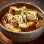 Soupe à l’oignon avec des croûtons et du fromage – découvre son goût !