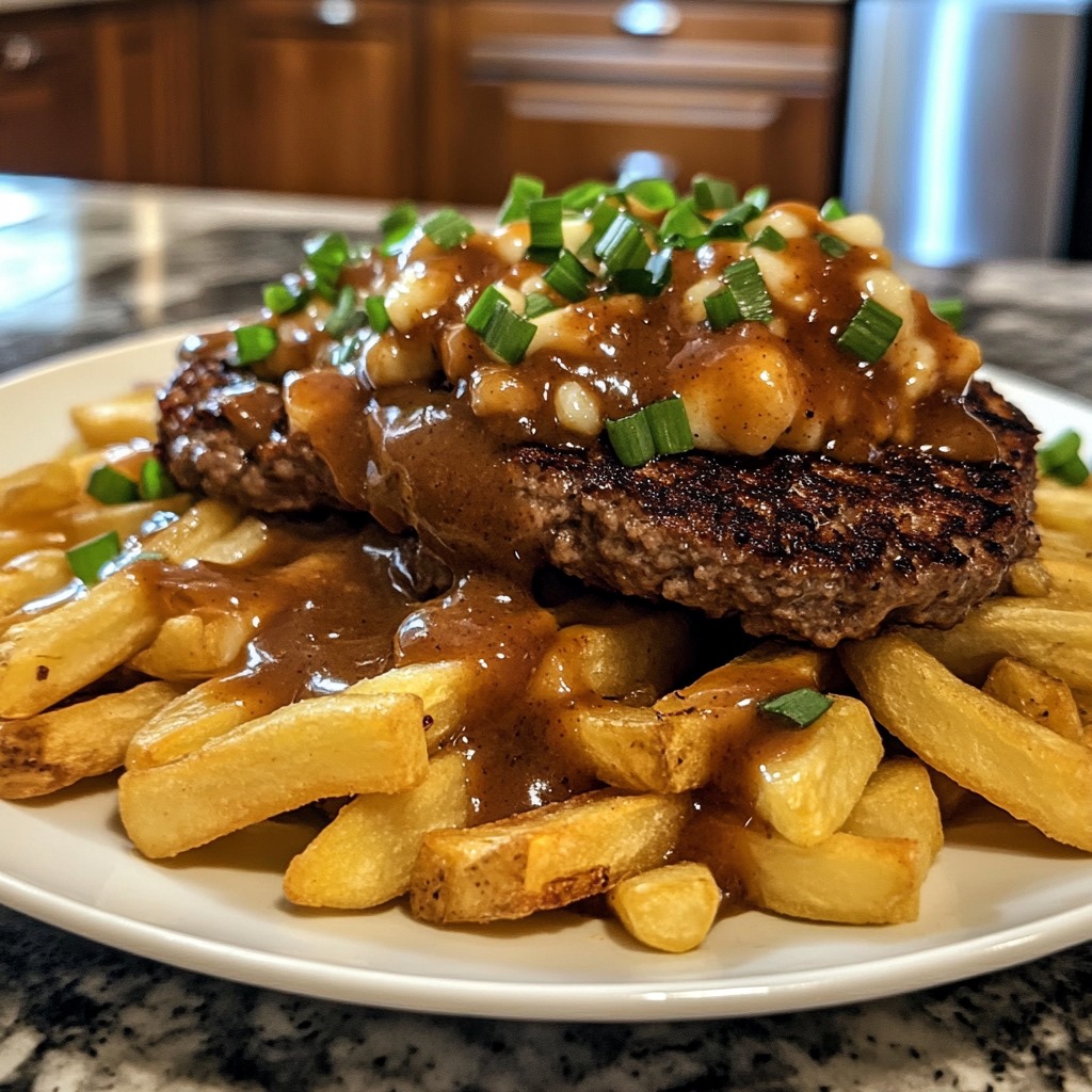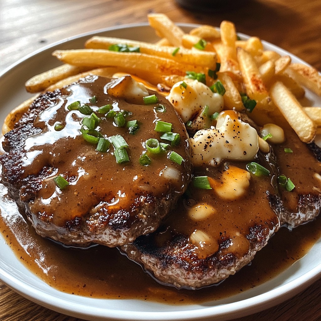 Avant toute chose, un immense MERCI de passer par ici — c’est grâce à vous que cette aventure gourmande prend tout son sens. Et aujourd’hui, j’ai une pépite à partager avec vous : un plat réconfortant, ultra savoureux, qui fait chavirer tous les cœurs à table — des steaks de hamburger maison nappés d’une sauce riche, accompagnés de frites croustillantes façon poutine. Un régal tout droit venu du paradis des gourmands !